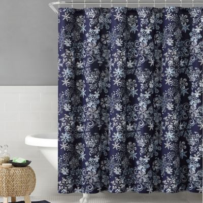 Vcny Holiday Themed Snowflake Shower Curtain In Navy Bed
