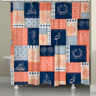 Laural Home 174 Coral And Navy Coastal Shower Curtain Bed