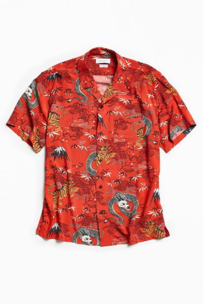 Uo Dragon Rayon Short Sleeve Button Down Shirt Urban