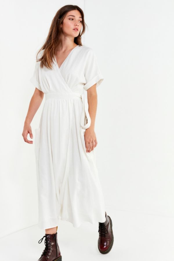 Uo Gabrielle Linen Midi Wrap Dress Urban Outfitters Canada